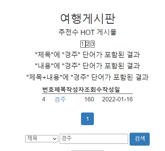 ✔ 여행이야기 검색 만들기 (제목, 내용, 제목+내용)